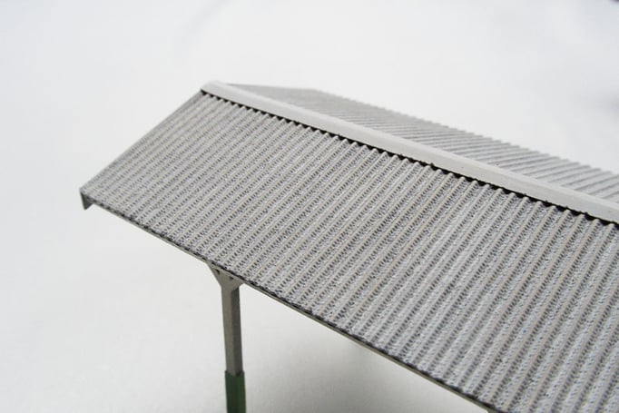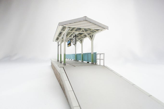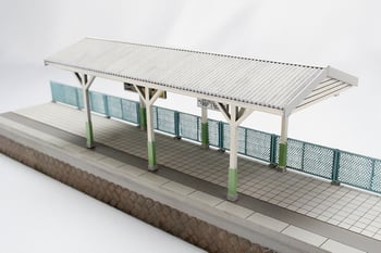 別売りの対向式ホームに合わせたホーム上屋・スレート波板タイプの未塗装組み立てキットです。