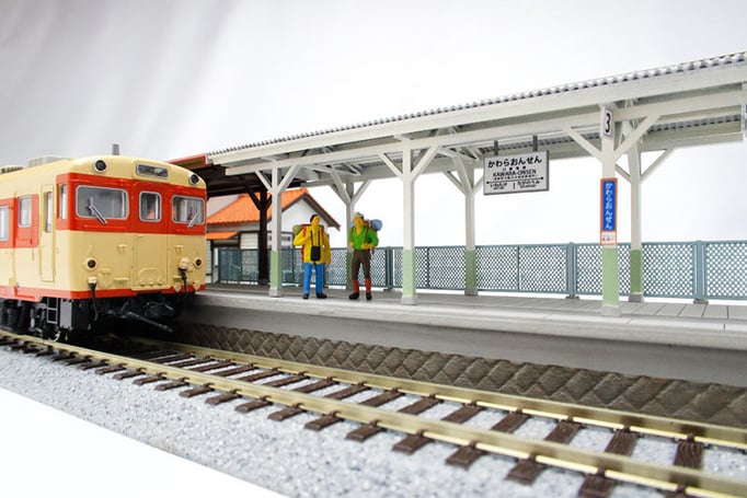 屋根は取り外し式ですので、列車が主役の時は外して、情景を楽しみたいときは乗せて、というように使い分けることもできます。
