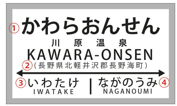 駅名板は「かわらおんせん」駅になっていますが、+500円でご希望の駅名を印刷致します。
